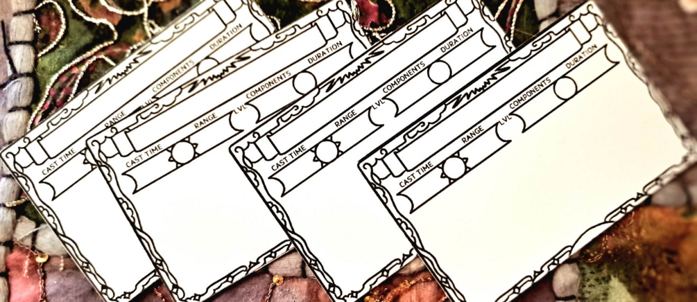 Print and cut these spell cards to help keep track of your spells! As a GM, you can customize these cards to hand out to your players, making for a quick way to distribute magical items!